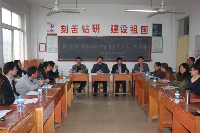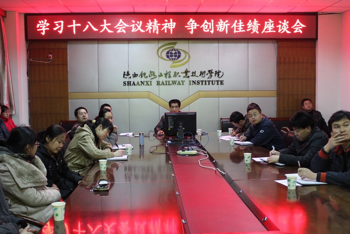 ◆道桥系召开教职工座谈会 畅谈铁院十年辉煌喜迎十八大。11月2日下午,道桥工程系全体教职员工济济一堂,在B412召开了“畅谈陕铁院十年辉煌 喜迎党的十八大召开”座谈会,畅谈陕铁院十年来的沧桑巨变,喜迎中共十八大。会议回顾了我院的跨越式的发展历程,肯定了学院发展依靠的是陕铁院人吃苦奉献、拼搏争先的精神,靠的是陕铁院领导坚持特色办学方向,依托铁路行业,紧密结合市场,坚持科学管理,从严治校,严把质量观,培育出一大批社会需要的下得去、留得住、用得上、干得好的国家建设人才,促使学院招生就业两旺,深得家长和社会的认可。