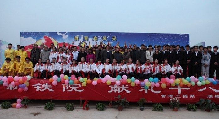 ◆放歌新铁院 献礼十八大。11月6日,学院管理工程系和测绘工程系党总支在学院高新校区广场联袂举办了“喜迎十八大•欢迎新学子”文艺汇演。学院院长王长友,党委副书记、纪委书记杨云峰和系部负责人出席观看了文艺表演。