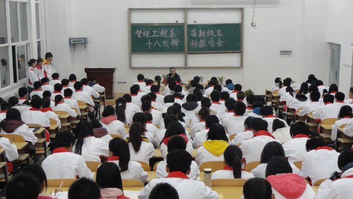 ◆管理系召开十八大会议精神学习会。11月20日晚,管理工程系党总支书记朱光亮在高新校区教学楼124教室对2012级入党积极分子、学生会干部、各班班干部学习了胡锦涛在十八大会议上作的题为《坚定不移沿着中国特色社会主义道路前进 为全面建成小康社会而奋斗》的报告以及新华社近期连续播发的学习贯彻党的十八大精神系列评论员文章。报告中,朱光亮就十八大报告核心内容、亮点等作了详细生动的解析,整场报告会的气氛十分热烈,取得了良好效果。(吴鹏飞、秦涛)