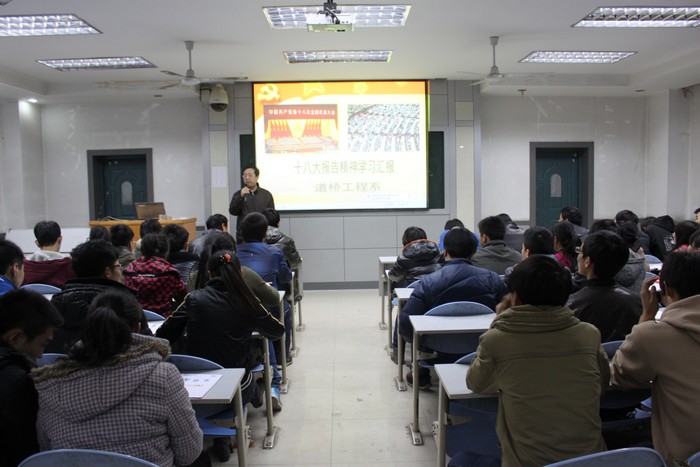 ◆道桥系召开十八大精神学习座谈会。11月22日晚,道桥工程系组织召开了“中国共产党十八大报告精神解读”专题讲座,该系办公室副主任对十八大报告进行了解读。会上还收看了习近平总书记在记者见面会上的重要讲话视频。讲座中同学们听讲认真、记录详细、互动踊跃。