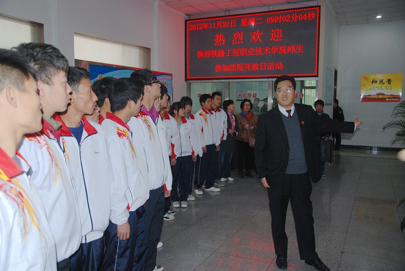 为了深入推进司法公开化建设,加深群众对法院工作的了解,11月20日上午,临渭法院邀请陕西铁路工程职业技术学院50余名师生来法院参观,参加“法院开放日”活动。