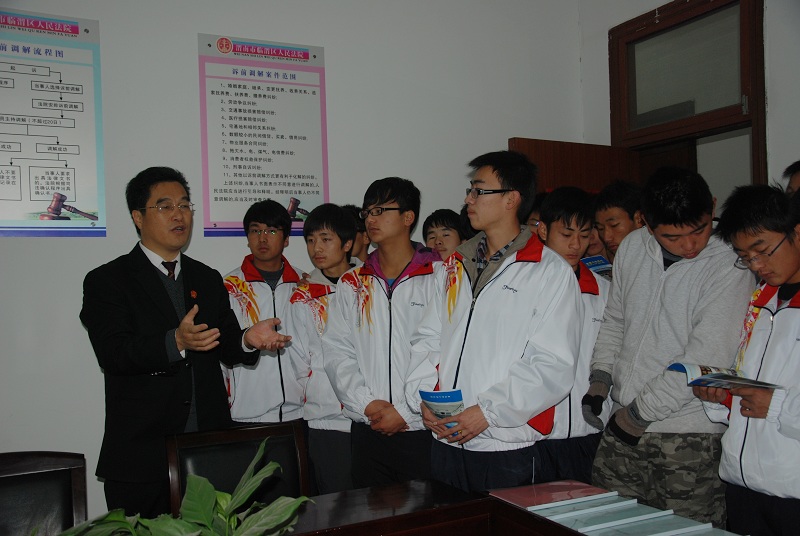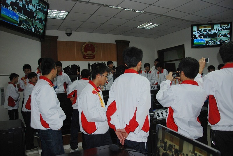 活动中,师生们在临渭法院党组成员、副院长王军武的带领下先后参观了立案信访大厅、诉前调解中心、科技法庭、荣誉长廊等场所,并就法院立案信访、审判工作、队伍建设、法院文化建设、青少年法制教育等方面向同学们进行了介绍,使同学们对法院工作和审判流程有了感性认识,零距离感受到了法院的庄严和司法的公开、公正。随后,师生们还旁听了一起盗窃案的庭审。庭审结束后,刑事审判庭法官为师生们进行了一场以《惜时律己 让花季更加绚丽》为主题的法制报告。报告结合真实案例,就“青少年违法犯罪的危害”、“如何应对犯罪行为”等内容向学生们进行了深入浅出的讲解,并告诫同学们要增强自我保护意识,争做爱国守法的好青年。