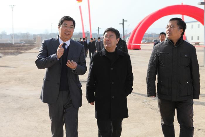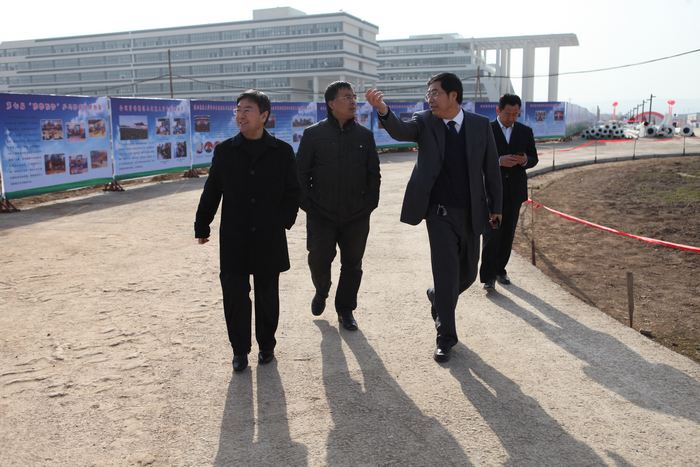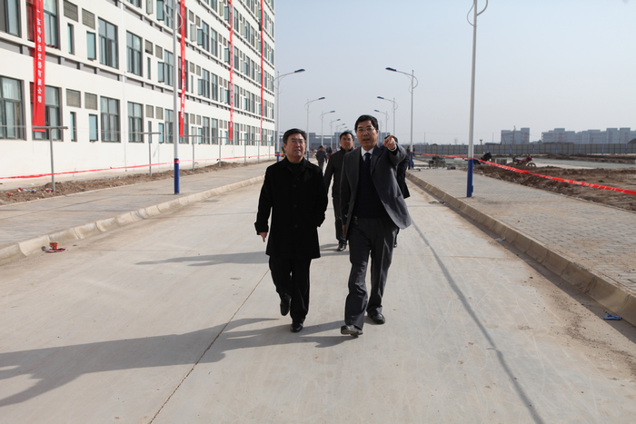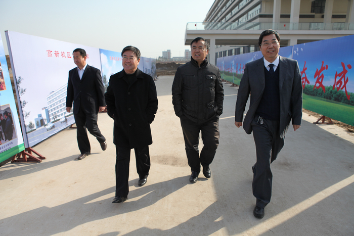郭立宏副厅长(左二)在王晖书记、袁宁处长的陪同下视察学院新校区建设