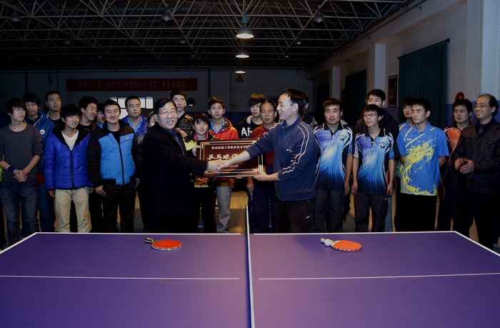 12月3日下午,陕西铁路工程职业技术学院工会乒乓球俱乐部在学院乒乓球活动中心挂牌成立。院党委副书记、纪委书记兼工会主席杨云峰到场祝贺并向俱乐部授牌。学院体育部部长、俱乐部秘书长张骏在挂牌仪式上,宣读了旨在通过乒乓球俱乐部活动,活跃师生员工的业余文化生活,强身健体,切磋球技,增进友谊,养成锻炼的习惯,促进全民健身活动开展,构建和谐校园,促进学院发展的俱乐部《章程》。一名俱乐部会员代表与会的二十余名会员现场进行了宣誓活动。(季露)