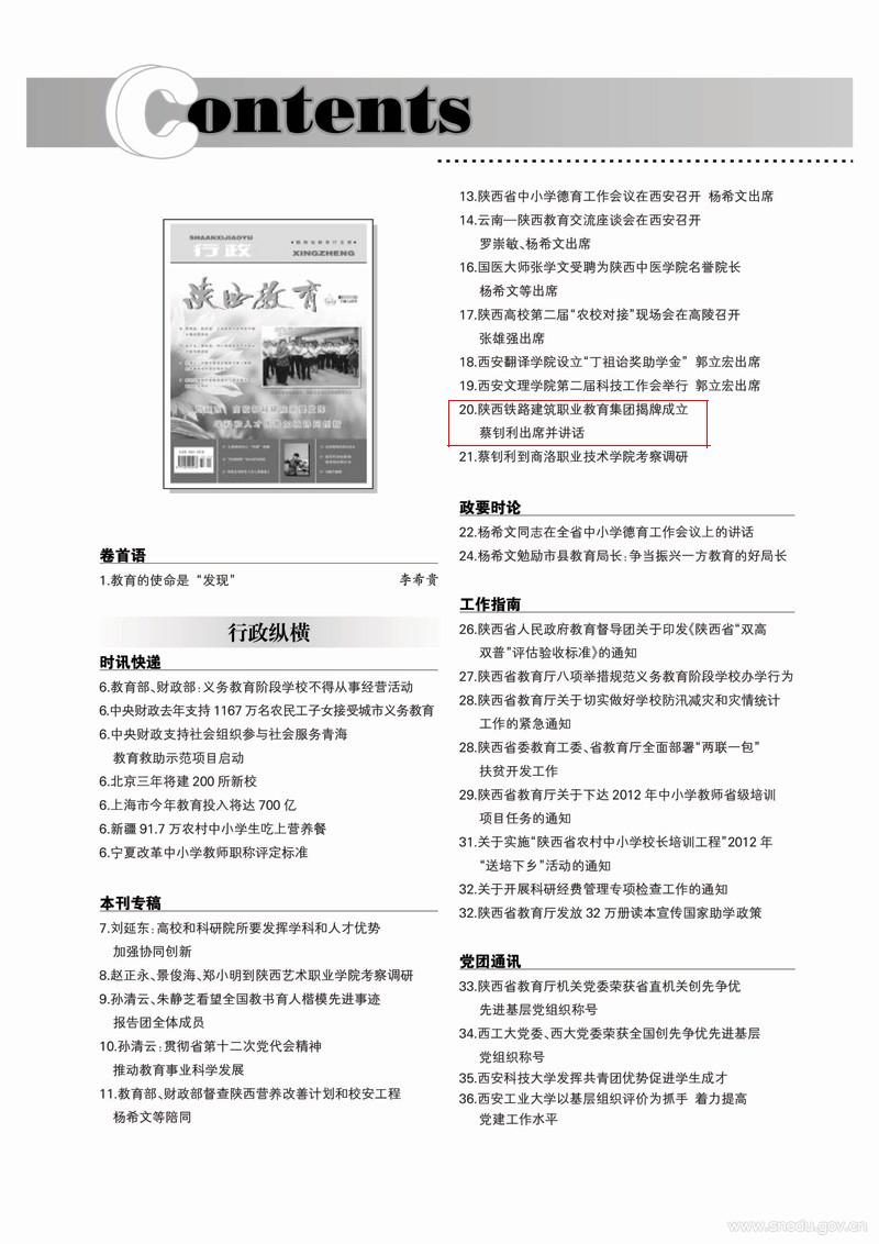 2012年《陕西教育(行政版)》第0708期题:陕西铁路建筑职业教育集团揭牌成立 蔡钊利出席并讲话