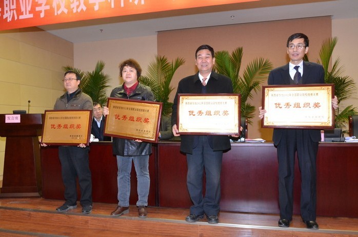 12月6日,陕西省中等职业学校教学科研工作暨全国职业院校技能大赛表彰会在西安召开。大会对我省参加2012年全国职业院校技能大赛获奖的学生选手和荣获大赛优秀组织奖的职业院校进行了表彰。陕铁院被省教育厅授予“优秀组织奖”,学院院长王长友代表学院领取了奖牌,并作为获奖院校代表,就发挥技能大赛的引领作用和深化职业教育教学改革工作在会上作了经验交流发言。