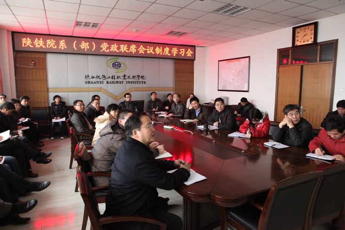 会上,党委组宣部负责人蒋平江首先对学院近期出台的《陕西铁路工程职业技术学院系(部)党政联席会议制度》、《关于召开院系两级民主生活会的通知》等四个文件进行了解释和说明。