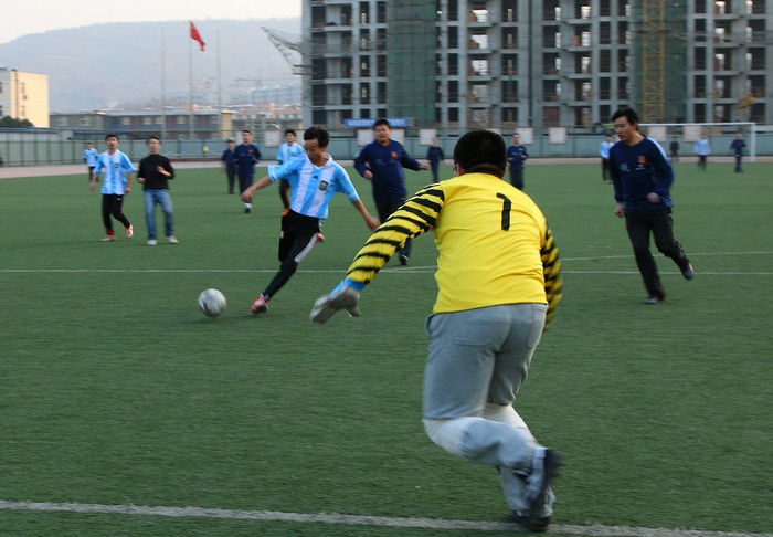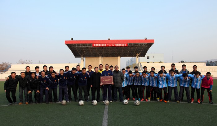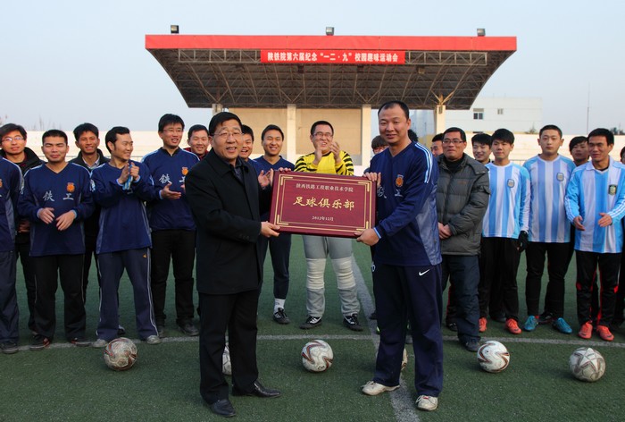 12月18日下午,陕西铁路工程职业技术学院工会在学院绿茵场上为“足球俱乐部”举行了端庄而简洁的授牌仪式,随着一场师生足球对抗友谊赛的哨音响起,陕铁院工会的第三个教职工业余体育俱乐部——足球俱乐部正式宣告成立。陕铁院党委副书记、工会主席杨云峰出席仪式并为俱乐部授牌。足球俱乐部三十余名成员参加了仪式和友谊赛。(季露)杨云峰为足球俱乐部授牌师生足球友谊赛足球俱乐部运动员合影