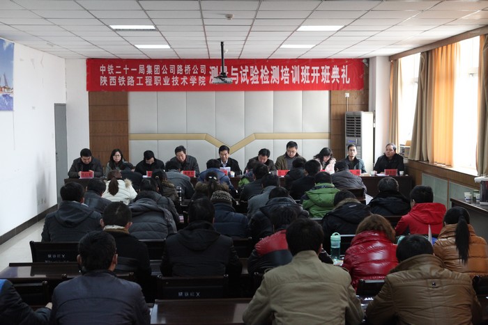 1月6日上午,中铁二十一局集团路桥工程有限公司测量与试验检测技术培训班开班典礼在陕铁院12楼会议室举行。学院院长王长友、副院长焦胜军,中铁二十一局路桥公司总经理王朝阳出席开班典礼。该公司人力资源部、工程管理部、检测中心负责人,陕铁院继续教育部、测绘工程系、道桥工程系、校企合作处负责人以及参加培训的该公司44名技术骨干参加了开班典礼。本次培训为期27天,分测量班和试验检测班。