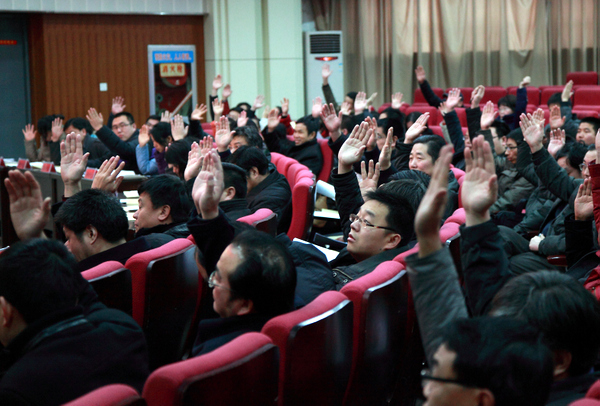 陕铁院《教职工代表大会实施细则》由于会前一个月先后三次交给教职工征集意见,已经将包括 “评议学院领导干部”等几项重大民主监督权等教职工重点关切的内容均写了进去,具备了较为坚实的群众基础,所以大会表决获得一次性全票通过。