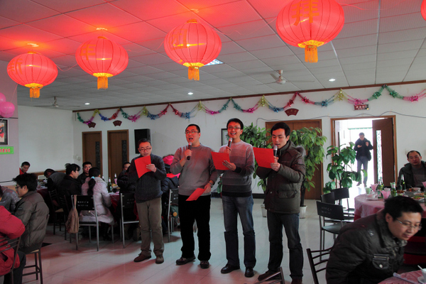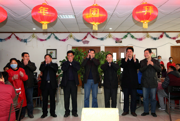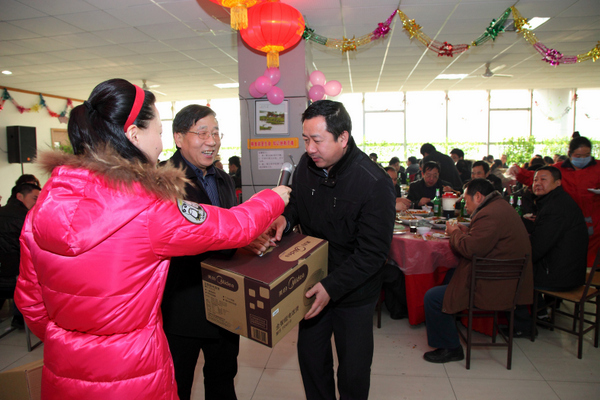 岁辞大泽春风劲,人舞小龙世纪新。1月21日中午,陕西铁路工程职业技术学院临渭校区餐饮中心大厅里大红灯笼高高挂,人声鼎沸喜气盈,院工会主办的学院2013新年团拜会隆重举行。学院领导班子全体成员与全院教职员工欢聚一堂,互相拜年,共贺新春佳节的到来。党委书记王晖向全体教职工发布新年致辞院领导班子给教职工拜年青年教师无伴奏四重唱为团拜会助兴党委副书记、工会主席杨云峰为现场抽得幸运奖的教师颁发奖品。