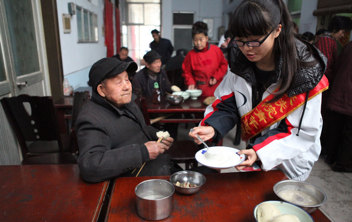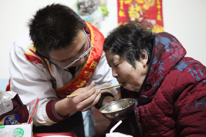 为老人端来煮好的汤圆