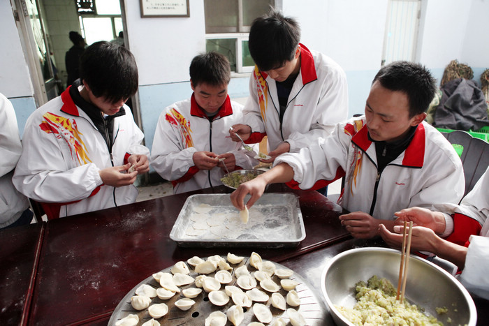 为老人们包饺子准备中午饭