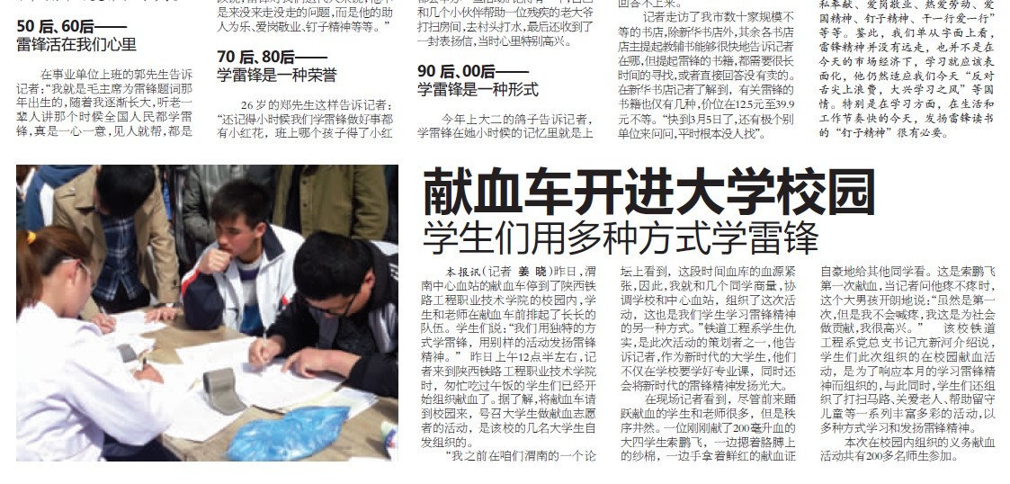 2013年3月5日渭南晚报第4版题:献血车开进大学校园