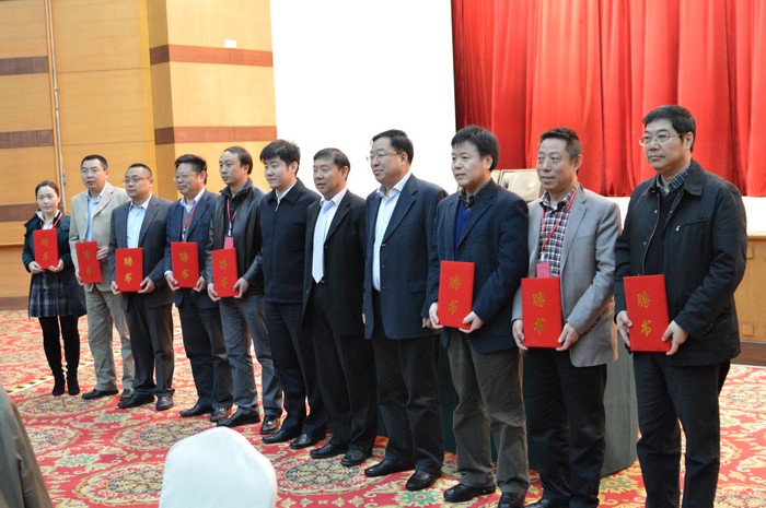 教育部、中物联领导向新增委员颁发聘书,右一为陕铁院党委书记王晖教授