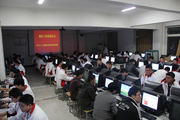 ◆测绘系团总支组织学习十八大报告和党章知识竞赛网上答题活动。3月28日晚,测绘工程系团总支在实训楼组织了200余名积极分子、团员代表参加“学习十八大报告和党章知识竞赛”网上答题活动。