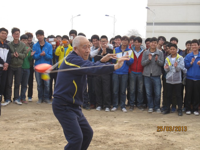 ◆离退休教师空竹表演慰问高新校区师生。3月25日下午,学院离退休教师、高级工程师展大全来到高校校区,用精采的空竹表演,慰问了那里的师生。(周燕红)