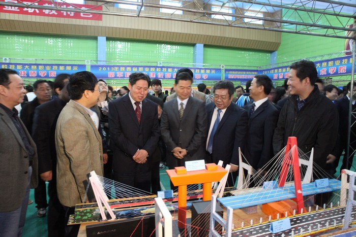 省教育科学文化卫生委员会主任委员杨希文,教育厅厅长李兴旺、副厅长蔡钊利等领导参观学院展台 4月2日,由陕西省教育厅举办的2013年陕西省高等职业院校技能大赛在咸阳开幕。陕铁院遴选的学生优秀手工作品参会展览受到关注,得到了教育厅和其他兄弟院校领导的高度评价。副院长焦胜军出席开幕式,参会的还有教务处、铁道工程系的22名师生。(王恒博)