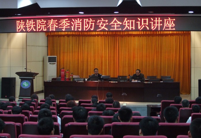 讲座现场 4月2日下午,陕铁院在学术报告厅组织召开了消防安全知识讲座,邀请省五进消防消防知识科教站专家组专家万宝为全院三百余名师生,就消防安全的重要性,防火、灭火、逃生、自救,灭火器的使用等方面作了普及说明。(宋宏武)