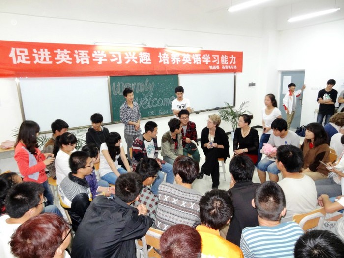 ◆两外籍教师指导我院高新校区英语角活动。5月17日下午,学院邀请两名外籍教师指导高新校区英语角活动,他们用生动简单的英语与同学们进行了交流,介绍了英语学习的方法和技巧,鼓励同学们要敢于开口并持之以恒,使英语口语取得进步。