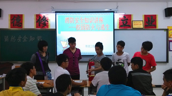 ◆铁工系高新校区各班级组织学习消防安全知识。近日,铁道工程系高新校区各班级组织学习了消防安全知识,就校园火灾的类型、形成的原因、危害及火灾来临时如何逃生、如何防止等内容进行了系统的学习,并重点演示了如何选择应急逃生工具和灭火器的正确使用方法。