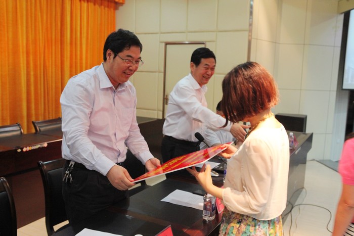 王晖向受表彰集体颁发奖金