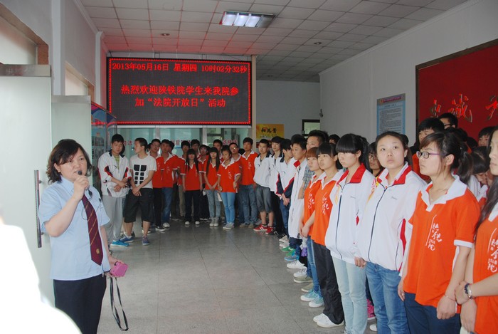 5月16日上午,在向同学们通报了案情后,思政教研部、学生处、建工系、道桥系师生一行120余人,在临渭区法院旁听了一起盗窃、抢劫案件的全部庭审过程。通过实地旁听,同学们对于检察院出庭支持公诉,法院审判以及辩护有了直观认识,对于在法庭上控辩双方如何运用证据有了深刻体会。感受到法律的公正,增强了法律意识和对法律知识的理解和把握。庭审结束后,校外实践教学基地指导教师、临渭区法院的法官就案件有关情况向同学们作了现场教学,并带领学生参观了法院的办公区及科技审判庭、未成年人审判庭等场所。渭南电视台、渭南日报等媒体也对当天的活动进行了采访、报道。