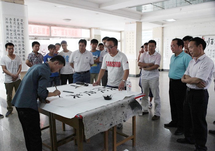 学院领导现场观摩学生书法创作