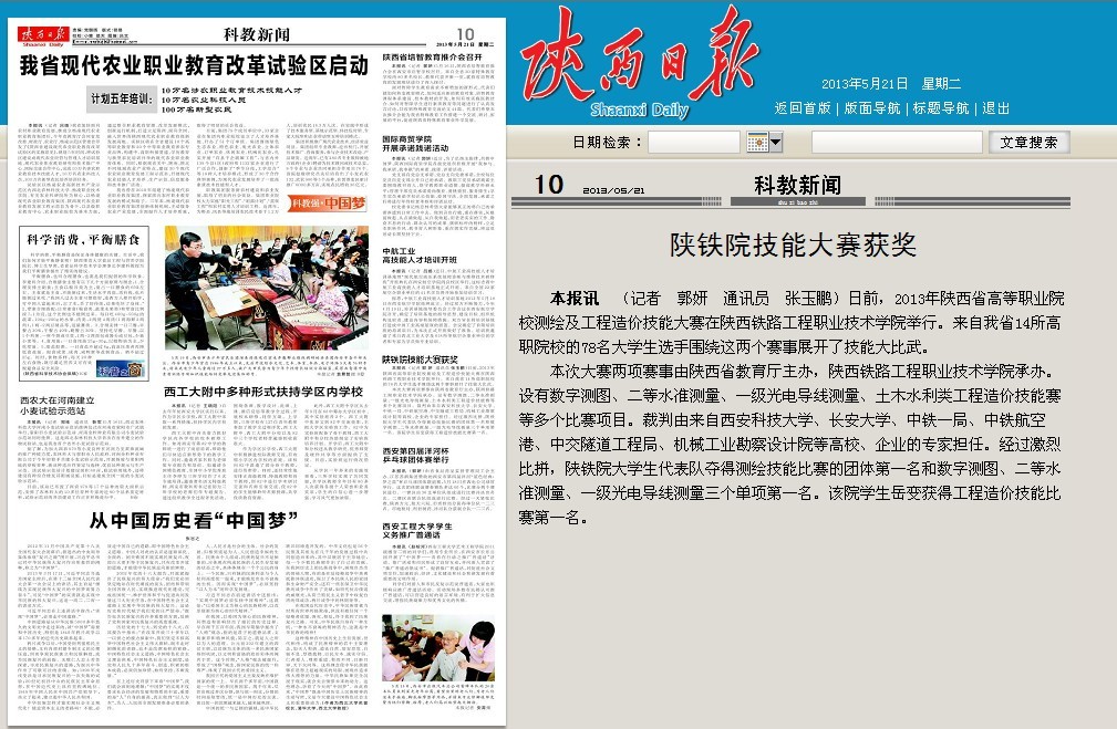 2013年5月21日陕西日报第10版题:陕铁院技能大赛获奖