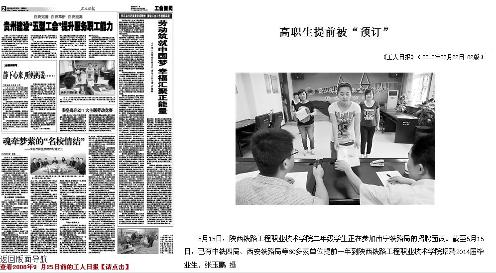 2013年5月22日工人日报第2版题:高职生提前被“预订”
