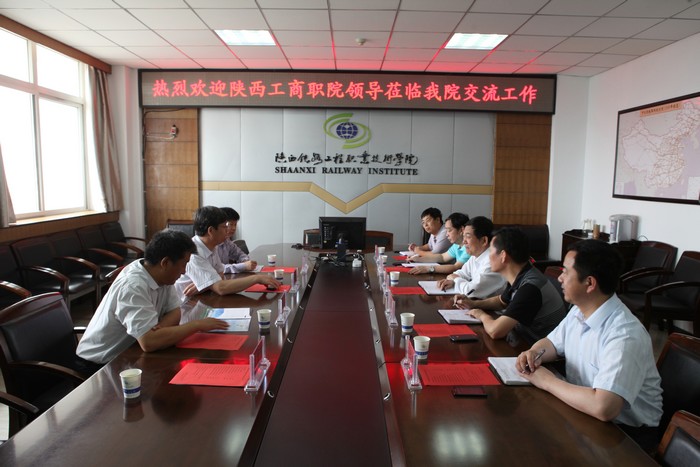 王振龙首先介绍了陕西工商职业学院基本情况,并赞赏了陕铁院近年来在高职教学改革和专业建设等方面力度大、成效好,综合实力走到了陕西高职前列,希望今后两校能加强交流与合作。王长友对王振龙校长一行的到来表示欢迎,并介绍了陕铁院的基本情况。焦胜军详细介绍了学院近年来在转变教师教学理念,打破传统教学模式,调整专业结构和布局等方面的经验和成效。随后,双方教务处、党政办负责人就教学改革、专业建设及教学行政保障建设等方面进行了对口交流。