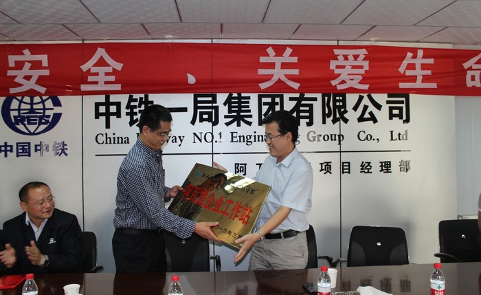 5月24日,铁道工程系阿瓦提企业工作站在中铁一局集团公司阿瓦提路项目部挂牌成立,铁道工程系党总支书记亢新河、中铁一局三公司副总经理田利锋为企业工作站揭牌,并为双方互聘人员颁发了聘书:阿瓦提路项目部常务副经理苏琦、项目总工贺永乐等被聘为兼职教师,指导学生开展现场教学;铁道工程系骨干教师苏昭被聘为项目部兼职工程师,在工作站挂职锻炼,与企业工程技术人员联合开展桥梁、路基工程施工课题研究。