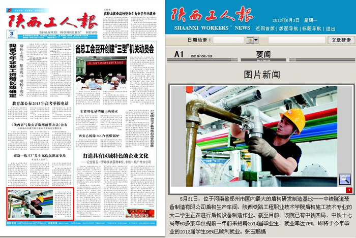 6月3日,《陕西工人报》头版报道陕铁院