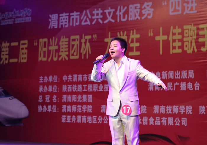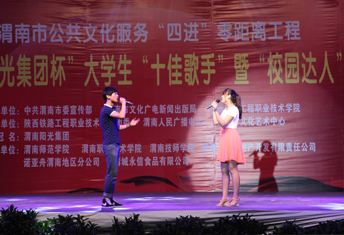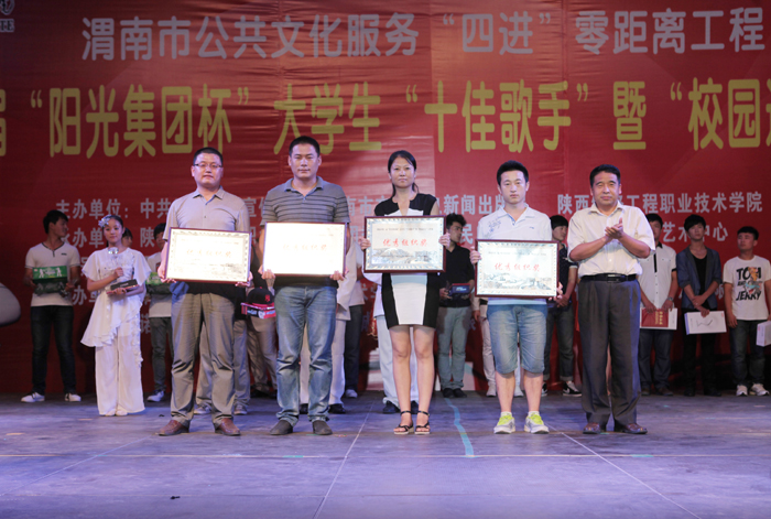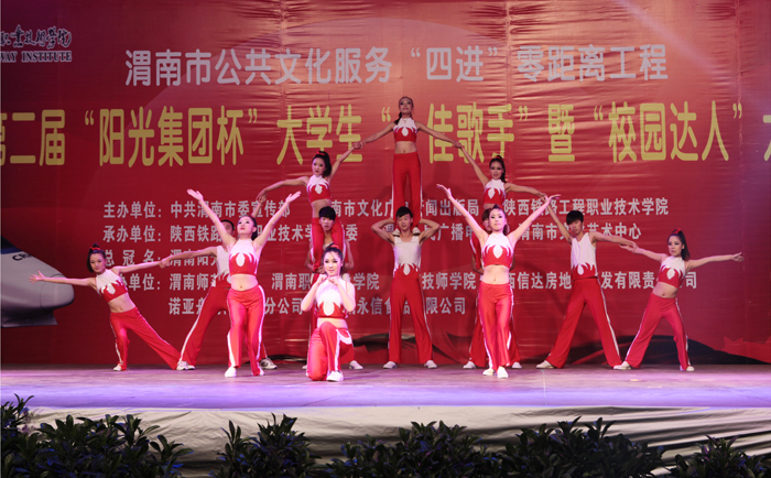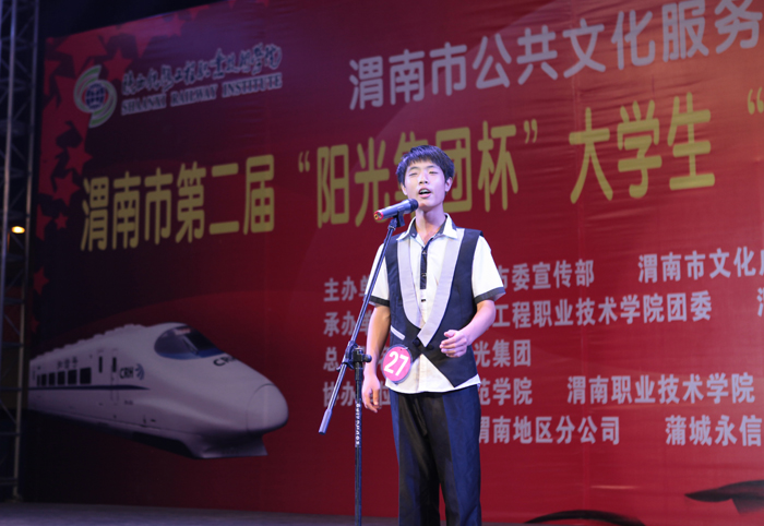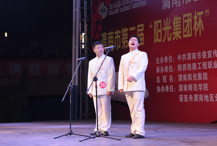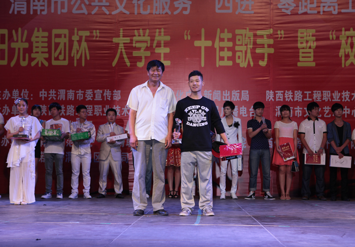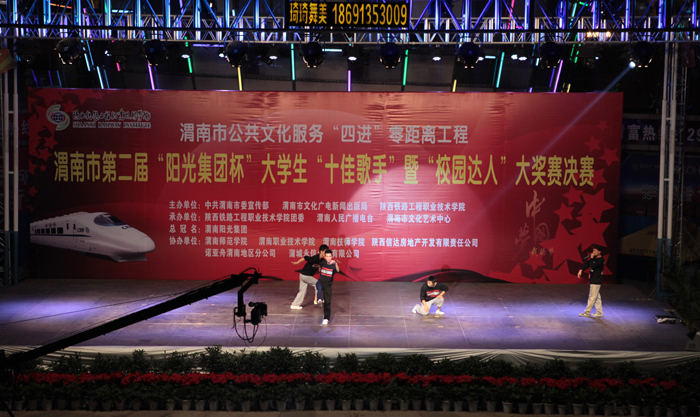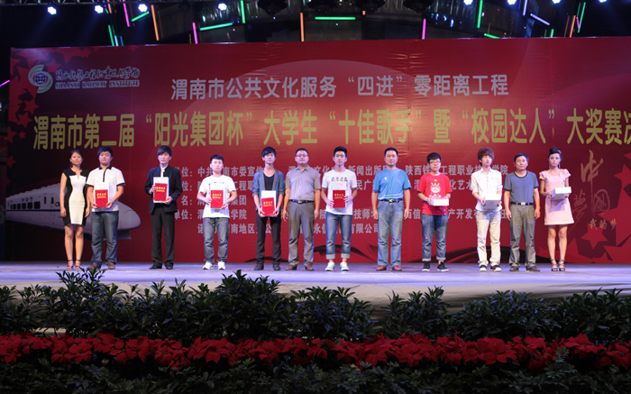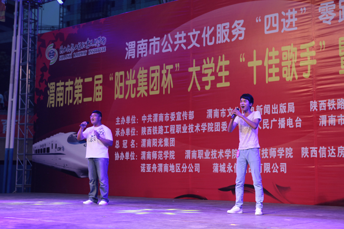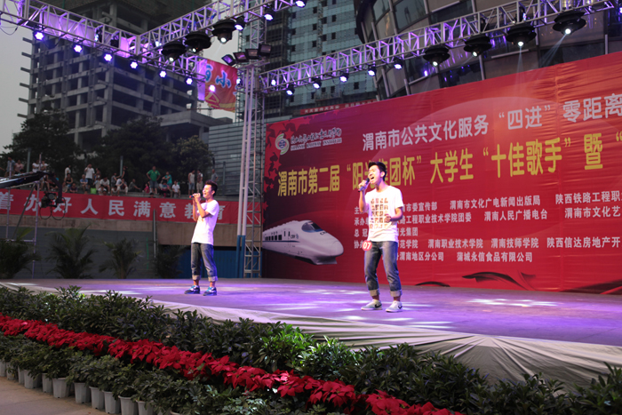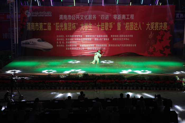 激情放歌演绎校园精彩,炫动活力放飞青春情怀。6月20日晚,渭南市第二届大学生“十佳歌手”暨“校园达人”大赛决赛在信达广场举行。本届大赛由渭南市委宣传部、渭南市文化广电新闻出版局、陕西铁路工程职业技术学院联合主办,陕西铁路工程职业技术学院团委、渭南人民广播电台承办。学院院长王长友、院党委副书记车绪武与近两千名渭南市民一同观看了比赛。