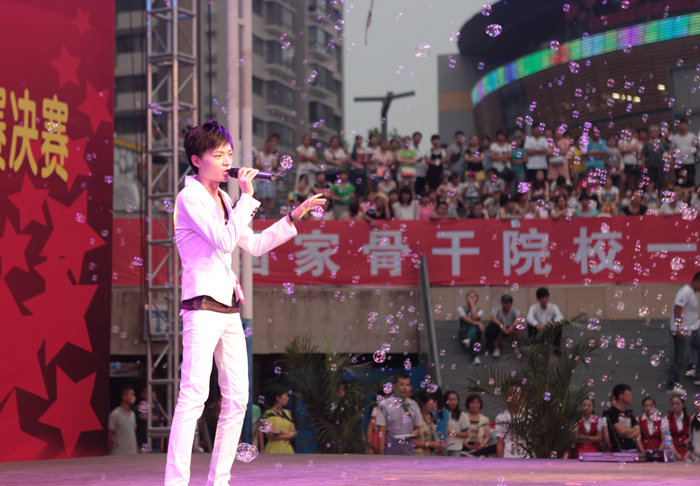 比赛在富有青春动感节奏的鼓舞中拉开帷幕。在“十佳歌手”比赛中,参赛选手们倾情演唱了各自精心准备的曲目,一首首久唱不衰的经典老歌、一首首脍炙人口的流行歌曲,被大学生们演绎得生动而美妙。在“校园达人”比赛中,更有相声、街舞、武术、面部弹奏等校园达人表演的“绝活”,让台下的观众拍手称绝。