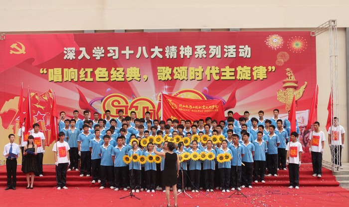 为庆祝中国共产党成立92周年,深情回顾党的历史,深入学习党的十八大精神,唱响红色经典,传承革命精神,弘扬时代主旋律,助力“中国梦”,展现当代大学生的爱党、爱国热情,努力营造和谐向上、健康文明的校园文化氛围。6月24日,陕铁院举办了以“唱响红色经典,歌颂时代主旋律”为主题的歌咏比赛活动。学院党委书记王晖,党委副书记车绪武,党委副书记、纪委书记杨云峰,副院长王闯、李林军出席活动。参加活动的还有组宣部、学工部、学生处、院团委负责人及各系党总支书记。