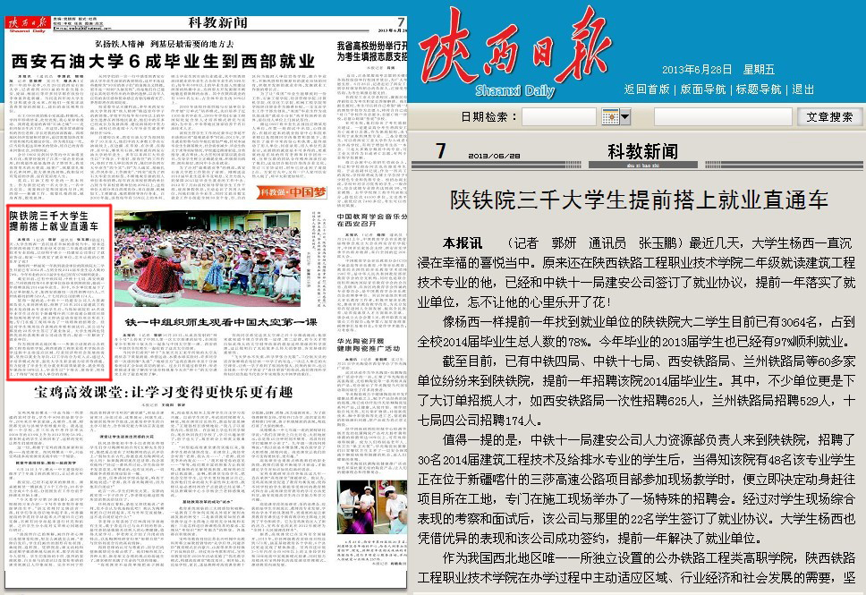 6月28日出版的《陕西日报》第7版专题报道陕铁院就业形势火爆
