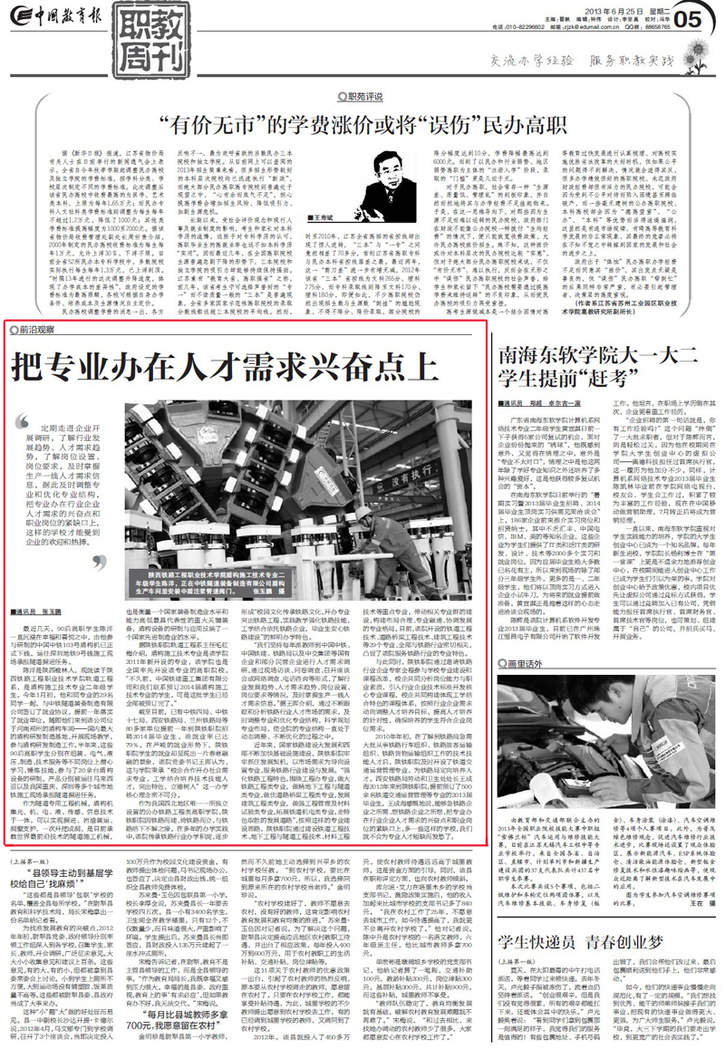6月25日出版的《中国教育报》第5版专题报道陕铁院专业建设经验做法