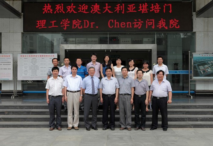 6月20日,澳大利亚坎培门理工学院国际项目总监陈浩琛博士来院交流考察。 上午,双方举行了2011年暑期赴澳洲坎培门理工学院培训教师座谈,院长王长友,副院长王闯、焦胜军出席座谈会。双方愉快地回顾了培训期间的学习与生活,希望友谊长存。与会教师反馈了赴澳培训的效果,并对双方的交流与合作提出了宝贵意见,双方还互赠了礼物。下午,双方举行了合作交流洽谈会,在E-learning与学生赴澳学习方面达成了初步协议。(韩茂源) 学院领导与澳大利亚来宾合影留念