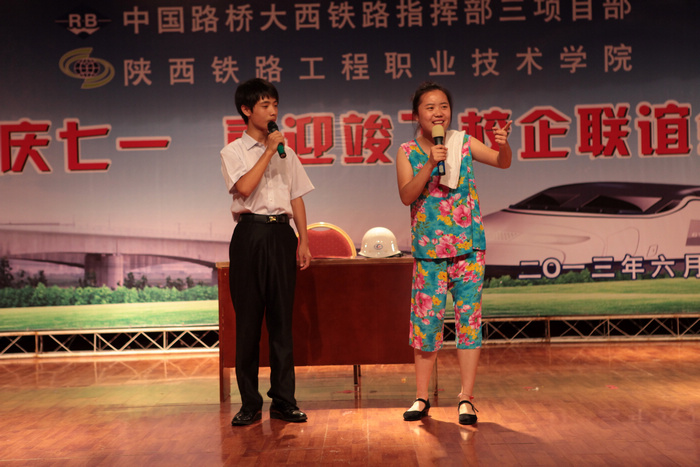 晚会上,陕铁院师生与项目部职工同台联欢,表演了舞蹈、歌曲、小品、相声等形式多样、精彩纷呈的文艺节目,赢得了台下观众的阵阵掌声。