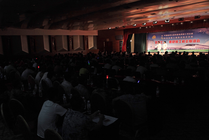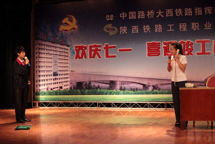 七一来临之际, 6月28日晚,陕西铁路工程职业技术学院与中国路桥大西铁路指挥部三项目部共同举办校企联谊晚会,喜迎中国共产党成立92周年。陕铁院党委副书记车绪武、副院长王闯,中国路桥大西铁路三公司副总经理兼中国路桥大西铁路指挥部三项目部经理李铁、党工委副书记徐光元及渭南市有关领导出席了晚会。