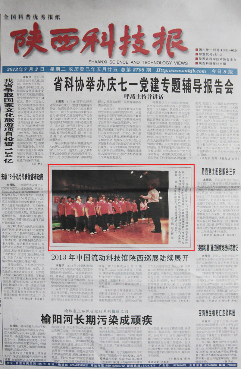 2013年7月2日陕西科技报头版图片新闻