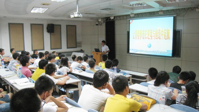 ◆优秀校友段军勇来院作报告。7月9日下午,学院优秀校友段军勇(现任中铁一局桥梁公司渭南片区项目经理)在B100教室,为学院毕业生作了一场题为《让青春梦想在逆境与创造中起航》的报告。(赵智军)