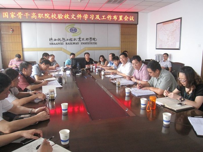 7月15日上午,学院在11楼会议室召开骨干院校建设2013年工作汇报会和骨干院校验收文件学习及工作布置会,学院领导班子集体出席会议,各建设项目及系部负责人参加了会议。