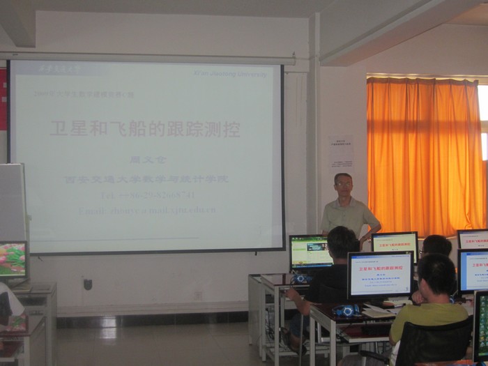 报告会上,周义仓教授以神舟七号发射全程跟踪的实例,分析了2009年数学建模竞赛中通信卫星和飞船跟踪测控的赛题,对以往答题中存在的问题进行了详细的分析;朱钤教授从数学建模活动的意义、竞赛答卷的撰写规范及注意事项等方面进行了详尽的讲解。两位教授的精彩报告,赢得了在场师生的一致赞誉。