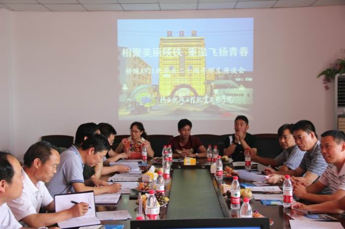 8月18日,学院桥隧8921班18位校友在毕业二十周年之际,重返母校,举行了“相聚美丽陕铁、重温飞扬青春”聚会,和学院领导、任课老师共叙师生情。学院党委副书记车绪武、副院长焦胜军出席座谈会。