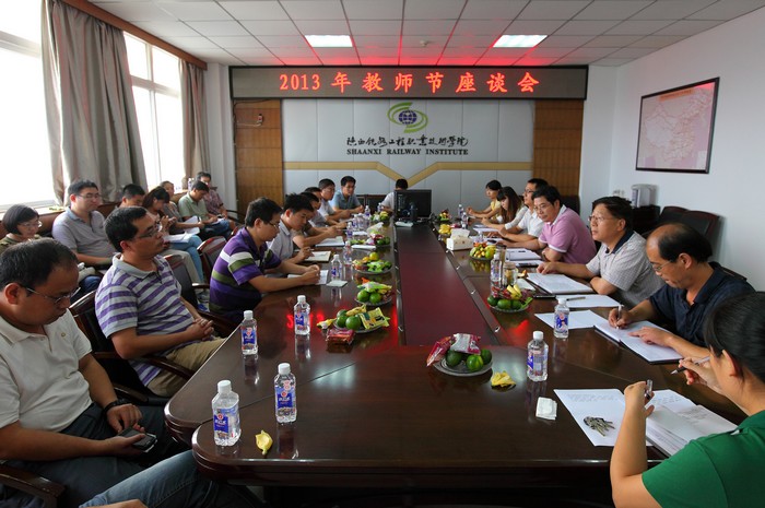 9月5日下午,陕西铁路工程职业技术学院人事处和院工会联合召开“教师节”茶话座谈会,邀请26名老、中、青教师代表同聚一堂,为学院的国家骨干高职示范校建设和未来发展出谋划策;为教职工的生活福祉献计建言。院党委书记王晖、副书记兼工会主席杨云峰出席座谈会并发言,院党委委员组织部长蒋平江参加了会议。座谈会由人事处长郑毅刚主持。