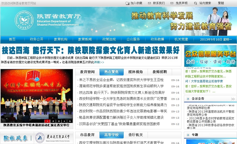 陕西省教育厅门户网站头条位置报道学院