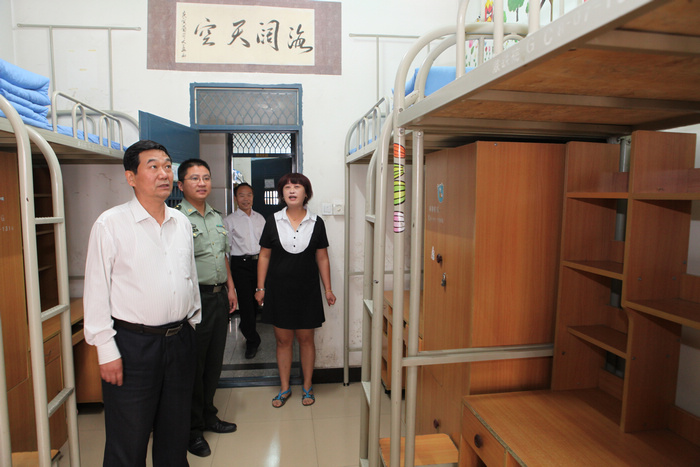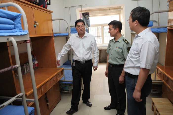 会前,王晖在部队领导的陪同下到新生宿舍检查内务