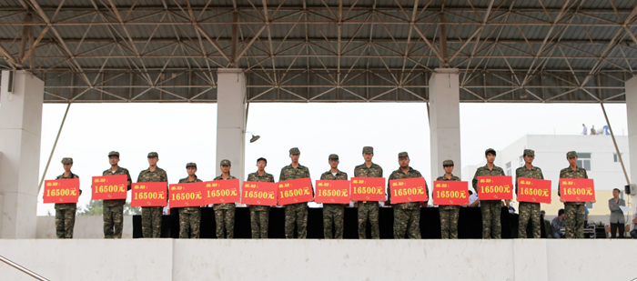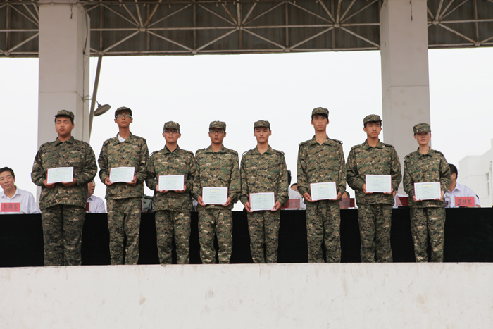受表彰的军训优秀学员上台领奖